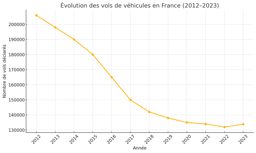 Selon les données du ministère de l’Intérieur, 140 269 vols de véhicules ont été enregistrés en France en 2024, soit un toutes les quatre minutes. Ces chiffres incluent les voitures particulières, les deux-roues motorisés et les véhicules utilitaires légers. La tendance globale est à la baisse par rapport à la décennie précédente, mais elle masque des disparités importantes selon les territoires et les types de véhicules.
